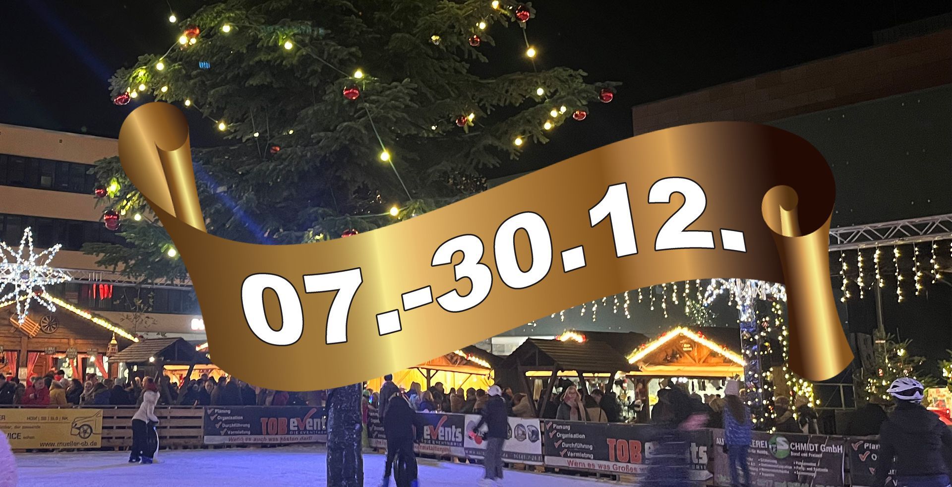 Auch in diesem Jahr öffnet das Weihnachtsdorf wieder für 3 Wochen seine Pforten auf dem Christian-Weber-Platz. Händler bieten in zahlreichen Holzhütten alles an, was zum Advent und zum Weihnachtsfest gehört: Holzspielzeug, Christbaumschmuck, Kerzen, Waren aus Keramik, Ton und Glas. Lebkuchen, Glühwein und allerlei Weihnachtsleckereien lassen die lang ersehnten weihnachtlichen Gaumenfreuden wahr werden. Als besondere Attraktion sorgt auch dieses Jahr wieder die Eisarena, nicht nur bei kleinen Besuchern, für leuchtende Augen.
